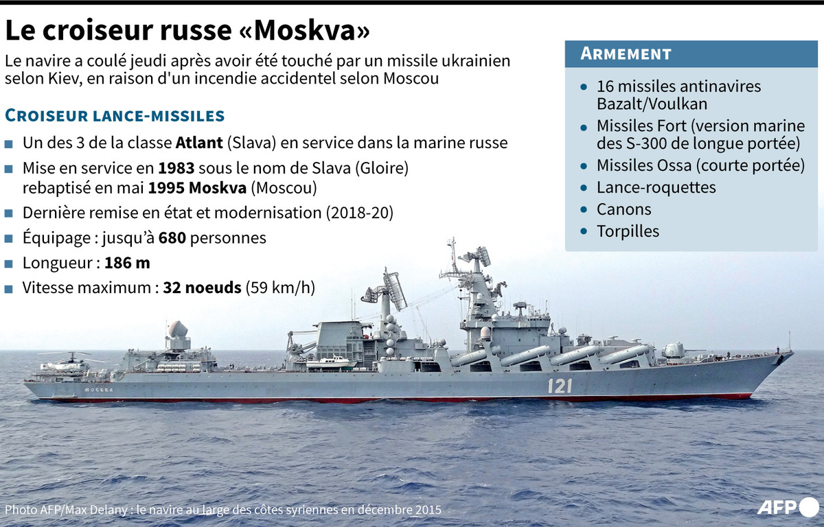 Le Moskva vaisseau amiral russe en mer Noire a coulé jeudi après. ROY MADHUR REUTERS. Les combats et bombardements se poursuivent dans lest ukrainien notamment à Marioupol.